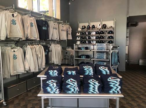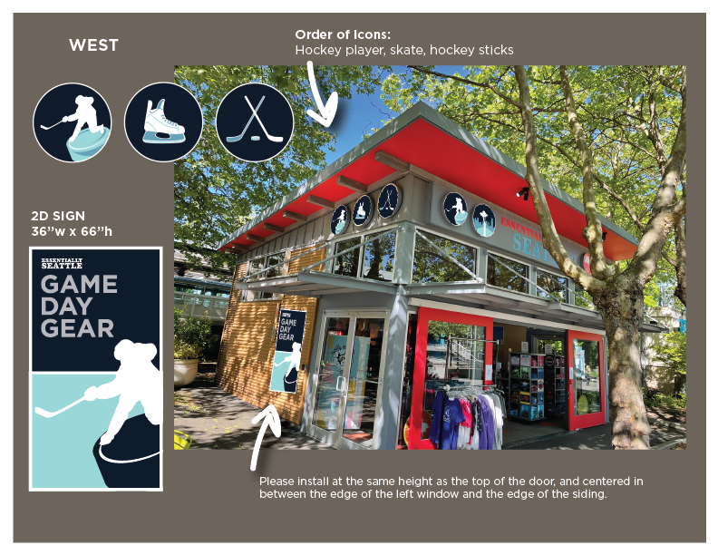 In 2021, I worked with the VP of Retail for the Space Needle and Chihuly Garden and glass to rebrand the look of the shop, Essentially Seattle, a souvenir shop in Seattle Center. With the addition of the Seattle Kraken, and the renovation of Key Arena, he wanted to change the offerings of the shop to cater to guests coming through the area looking for sports apparel on their way to the different events. I made custom sport-themed icons and signage for the shop to coordinate with the merchandise.